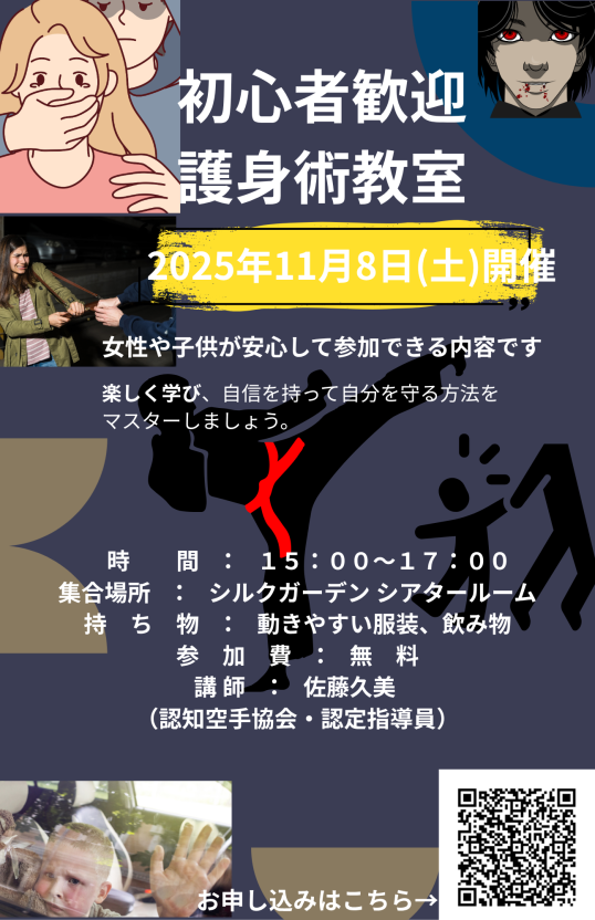 そこでシルクガーデンでは11/8(土)に護身術教室を行います!🥋