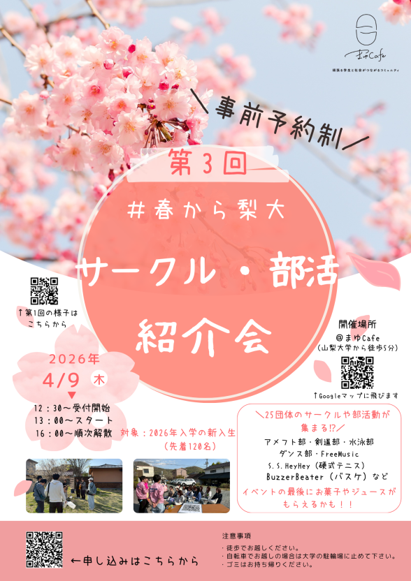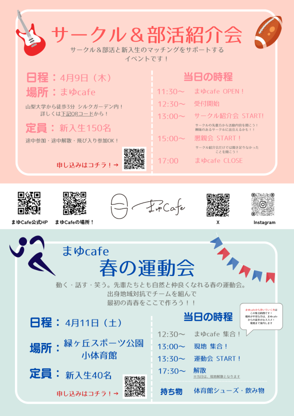 場所:まゆCafé(山梨大学から徒歩3分シルクガーデン内)