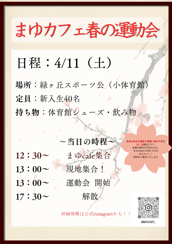 【告知】4月11日[土]まゆカフェ春の運動会開催!