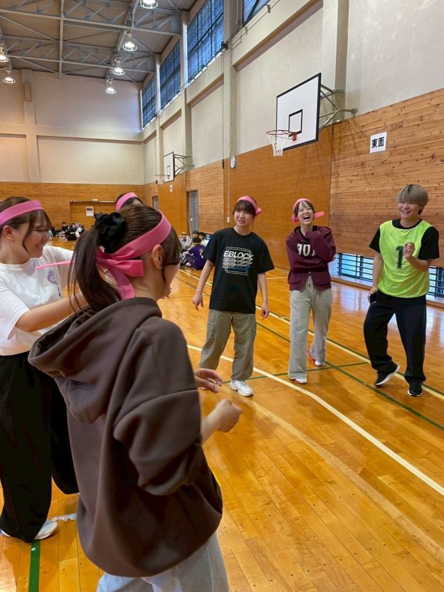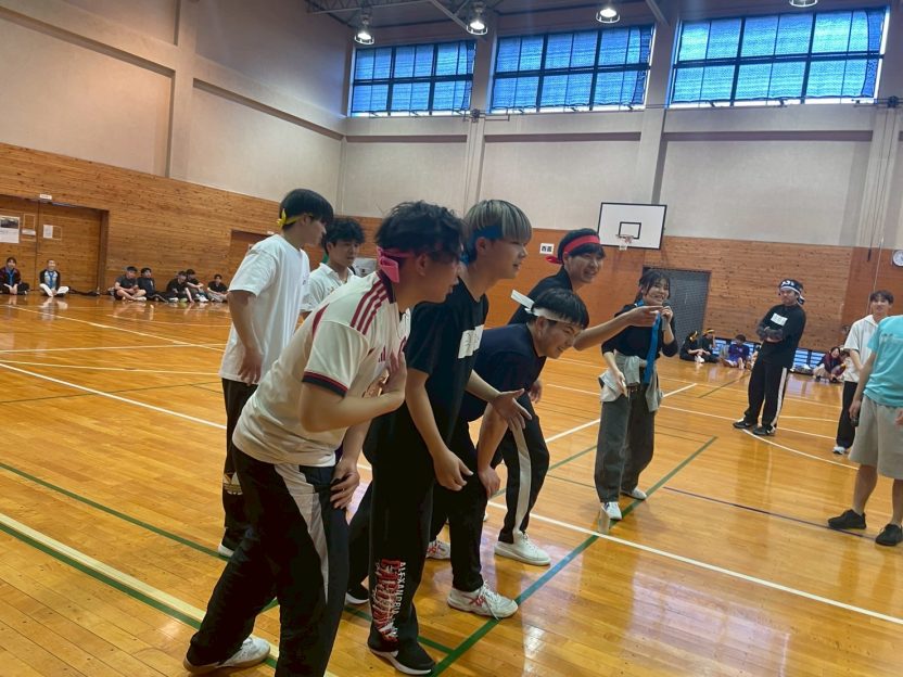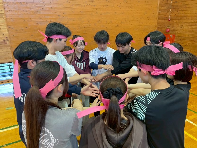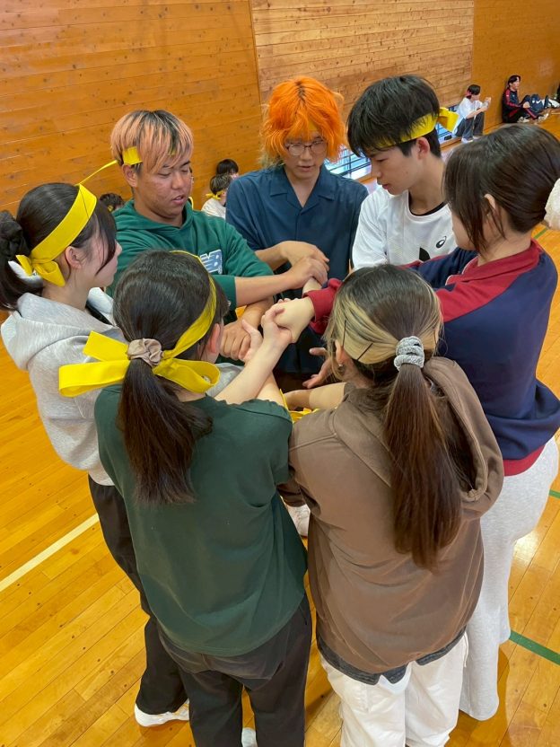 12人で複雑に絡まった状態から抜け出すこの種目は、ただ体を動かすだけではなく、自然と声を掛け合いながら力を合わせる時間になっていました。